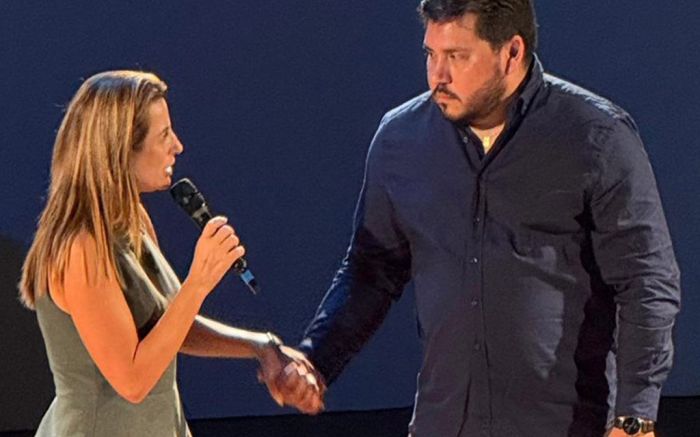 Univali no caminho certo. A posse do reitor Rogério Corrêa foi prestigiada e mostrou sincronia. Na imagem, o prefeito Robison Coelho (PL) e o presidente da piramidal, Fernando Pegorini (PL)