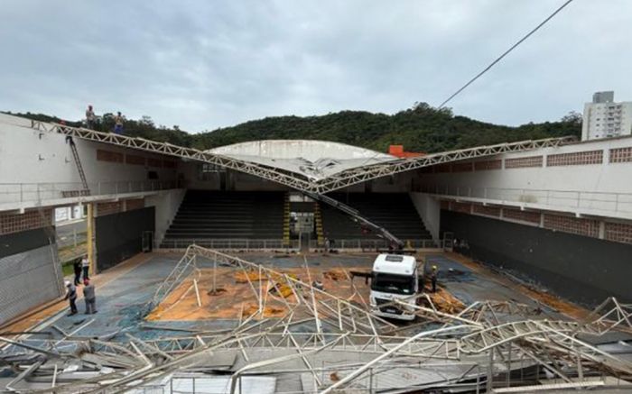 Obra de demolição do ginásio Ivo Silveira na Fazenda, em Itajaí, provoca risco