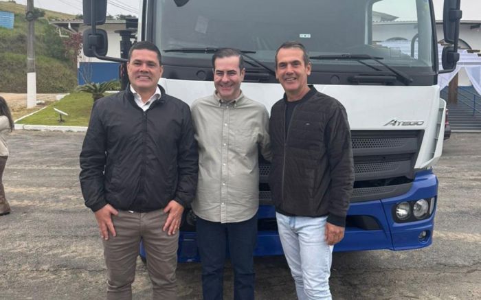 Entrega de caminhão na Agricultura pexêra reuniu o prefeito Robison Coelho (PL), o secretário de estado da Agricultura, Carlos Chiodini, o Xoxodine (MDB), e o vereador das capivaras, Vanderlei Dalmolin (MDB). Hummmmm...