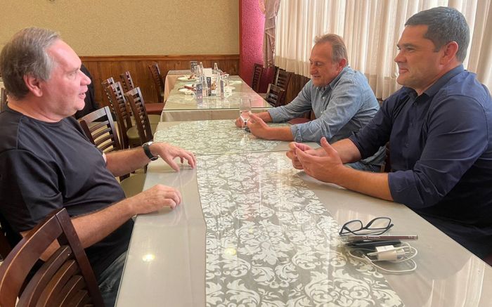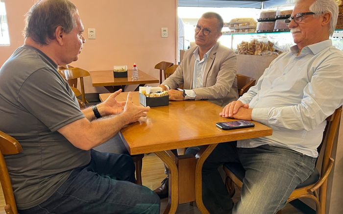 JC almoçou com o prefeito de Itajaí, Robison Coelho (PL), e o secretário de Obras, Tarcizio Zanelato