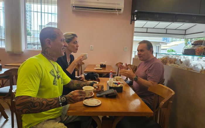 O socadinho escriba, convidado, almoçou com o prefeito da city pexêra, Robison Coelho (PL), acompanhado do secretário de Obras, ...