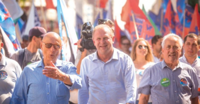 Candidato a governador, o galego do oeste Gelson Merisio (PSD) e o candidato ao Senado, o turco-careca Esperidião Amin (PP), caminharam pelo calçadão da Hercílio Luz, ontem, na reta final das eleições.Bellini láO ex-prefeito e ex-homem dos galináceos ...