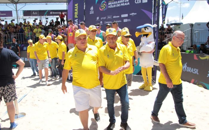 O pré-candidato a governador João Rodrigues (PSD) e o presidente da Leléia, Júlio Garcia (PSD), estiveram em Navega city prestigiando o campeonato Brasileiro de Vôlei de Praia com o prefeito Liba Top, ops, Fronza (PSD)