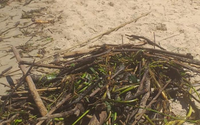 A chiquetosa praia Brava ainda tava cheia de entulho das chuvas neste fim de semana de sol (Foto: Surfista Prateado)