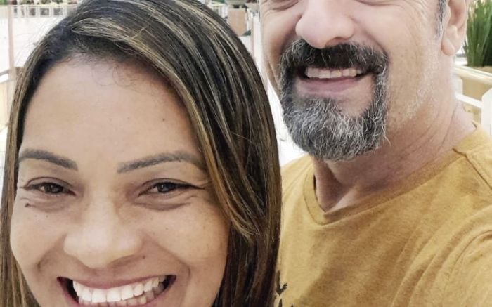 O candidato a prefeito de Navega city, Rogério Equilíbrios (PL) com sua patroa, Edjane Corrêa, e o vice Paulinho Melzi (MDB) e sua esposa, Viviane Schel