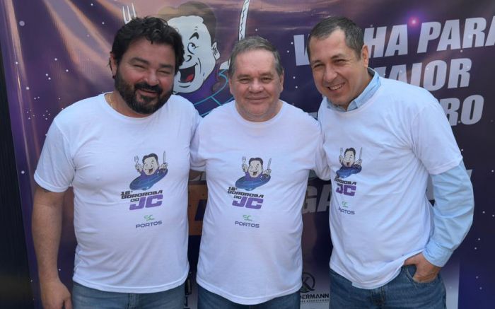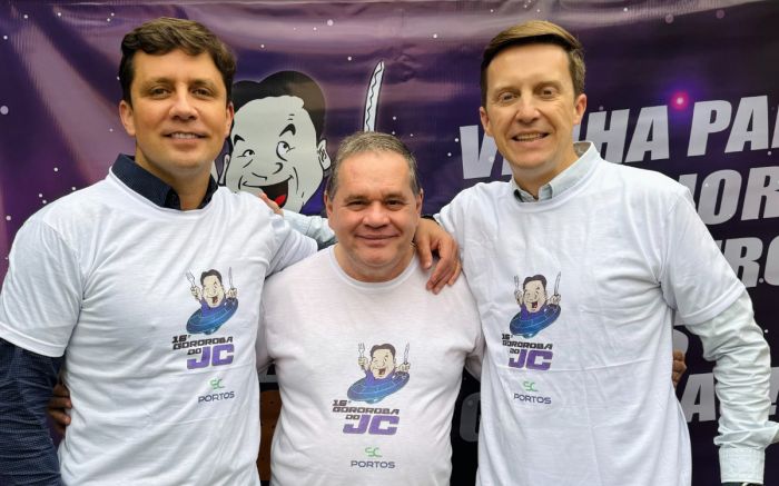 O candidato a prefeito Carlos Chiodini, o Xoxodine (MDB), seu vice, Márcio Dedé (UB), o prefeito em exercício, Marcelo Saldré, ops, Sodré (PDT), acompanhados de candidatos a vereadores, simpatizantes e puxas de plantão estarão na Gororoba do JC