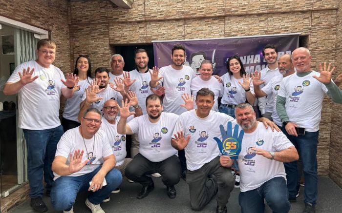 O candidato a prefeito de Camboriú e seu vice, Leonel Pavan (PSD) e Jozias de Souza (Podemos), reúnem apoiadores na sexta-feira