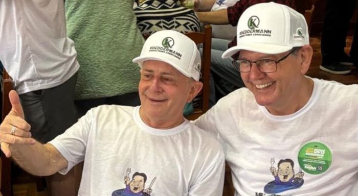 Os empresários Nilton Hang (Havan) e Gil Koeddermann (Koeddermann Consultores Associados), apoiadores da Gororoba, no maior encontro das galáxias