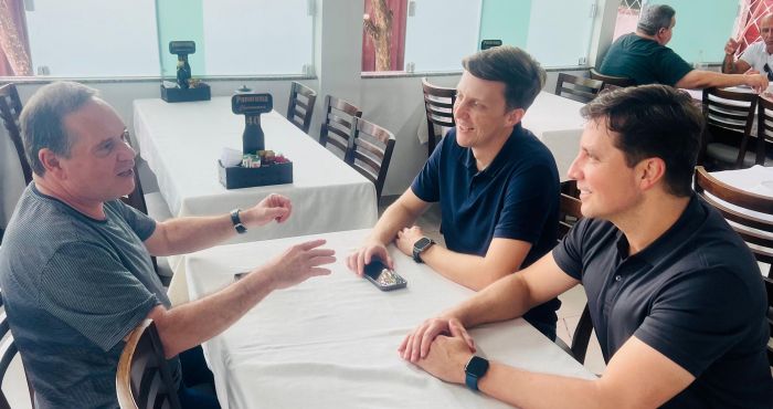 O socadinho escriba foi convidado pra almoçar com o prefeito pop star Fabrício Oliveira (PL) e o pré-candidato a prefeito Peeter Lee (PL)