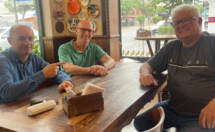 Republicanos reunidos: o poderoso presidente do partido em Itajaí, Fabinho Rezes; o secretário estadual da sigla, Márcio Ferreira, que é braço direito e esquerdo do ex-governador Carlos Moisés e o empresário e pré-candidato a prefeito de Camboriú, Altamir ...
