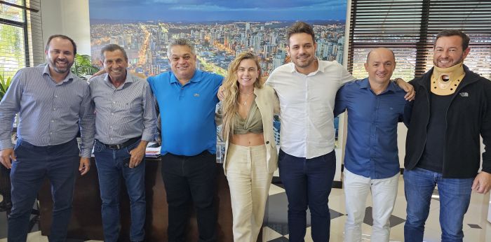 O pré-candidato a prefeito de Itajaí, Sancho Pança Osmar Teixeira, com os poderosos do PSD, Podemos e Republicanos