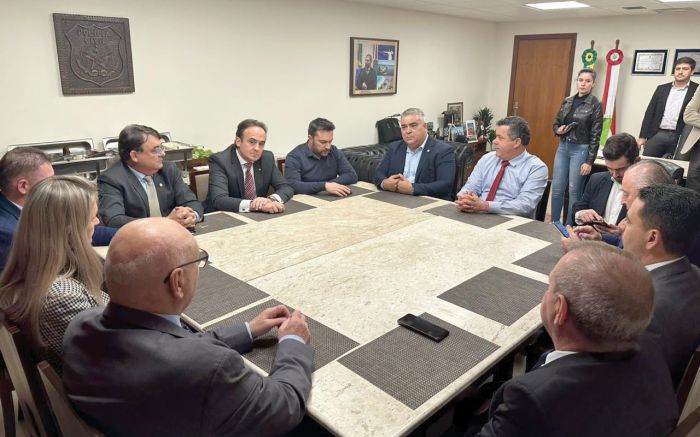 Os barbudinhos Volnei Morastoni (MDB) e o secretário de Desenvolvimento Econômico, Thiago Morastoni (Podemos), e o deputado federal Jorge Goetten (PL) conversaram de pertinho com o governador Jorginho Mello (PL) sobre as demandas da city pexêra e as ...
