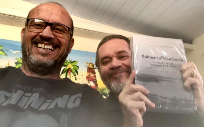 O jornalista, escritor, pesquisador e historiador (ufa!) Bola Teixeira visitou a choupana do JC e presenteou o pançudinho com o seu livro: Balneário Camboriú II