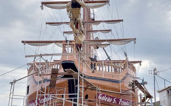 Grupo Bontur, que toca o Complexo Parque Unipraias, o Atracadouro Barra Sul e o Barco Pirata anunciou investimentos de R$ 45 milhões nos próximos dois anos. Na imagem o Galeão Santa Trindade, maior barco temático do país, sendo finalizado em Navega ...