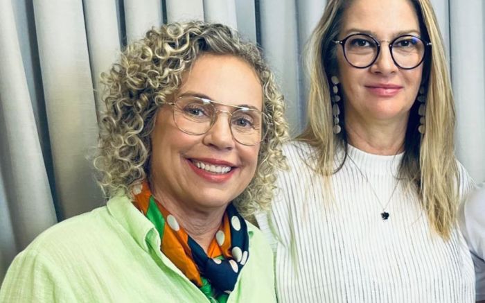 A fundadora da Colcci, Lila Colzani, ao lado da deputada federal eleita Ana Paula Lima (PT) tá pedindo voto pro Lula
