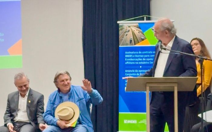 O único! Durante a visita do presidente do BNDES, Aloizio Mercadante, ao Porto de Itajaí, o prefeito do Camboriú, o ex-tudo Leonel Pavan (PSD), foi para o evento com uma montoeira de projetos debaixo do braço pra entregar para o chefe do bancão