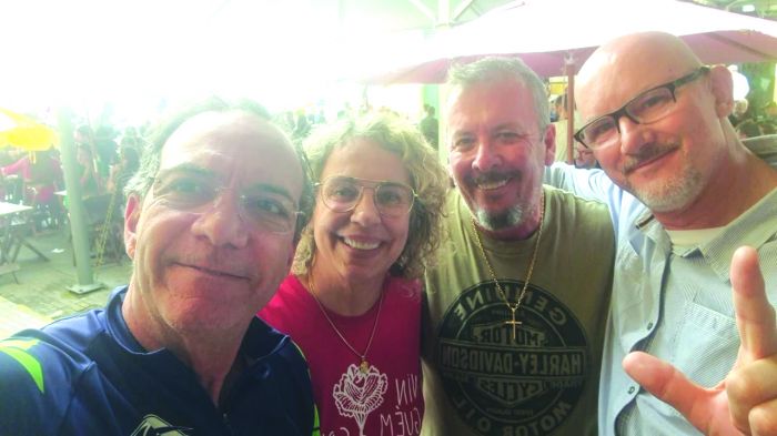 O pré-candidato a deputado federal, Jorge Goetten (camisa preta), que pretende viver pelo menos 120 anos e, completou 60 recentemente, continua na lida e formalizando contatos por toda Santa & Bela Catarina
