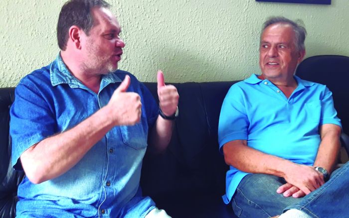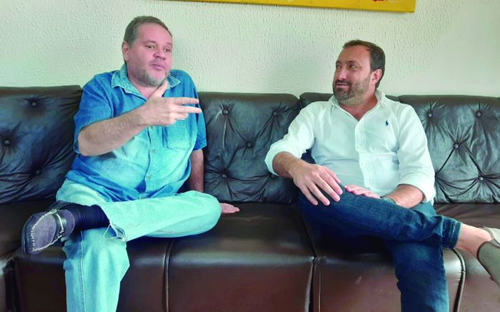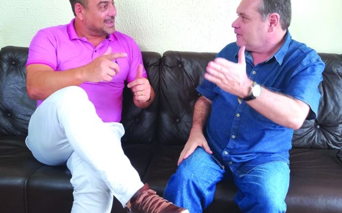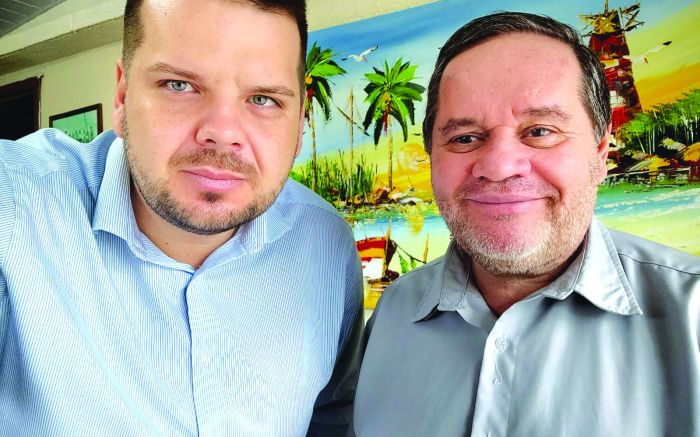 O ex-prefeito de Porto Belo, Emerson Stein, que é pré-candidato a deputado estadual e o ex-vereador que deixou a secretaria de Segurança de Porto Belo, Laudelino Lamim, pré-candidato a deputado federal, ambos do MDB, visitaram a choupana do JC.