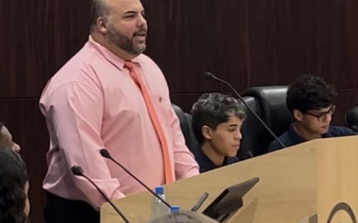 O vereador serelepe Cris Klaus (PRD), que também é presidente da Escola do Legislativo, acompanhou a sessão dos vereadores mirins na piramidal casa do povo