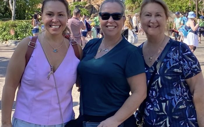 Eliane Gugelmin, com as filhas Claudia e Paola, foram fazer um ‘revival’, mãe e filhas, em cena que elas já protagonizaram muitas vezes, na Disney