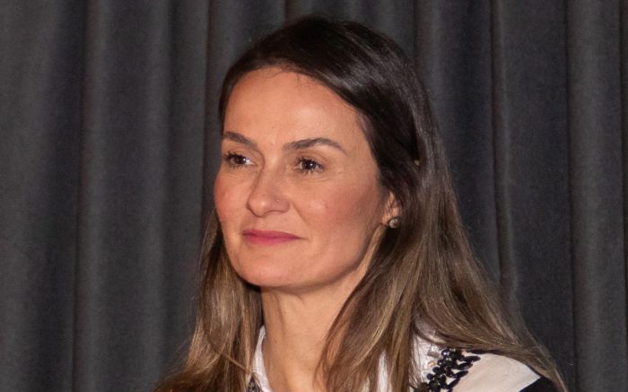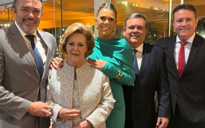Thaisa Nascimento Corrêa, presidente da ACII, celebrando o lançamento da 1ª Feira de Negócios da entidade que acontecerá de 5 a 7 de setembro, no Centreventos Itajaí, e deve receber cerca de 15 mil visitantes