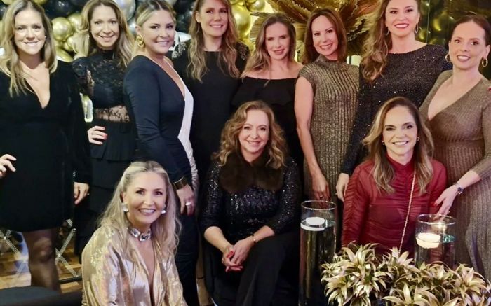 As amigas de Cabeçudas: Ana Tereza e Maria Paula Canziani, Fernanda e Gisela Rodi Eicke, Karen e Ingrid Schauffert, Maria Luiza Silva, Denise Fistarol, as manas Giovana e Vanessa com a aniversariante Alessandra Deeke Rausch que comemorou seus 50 anos ...
