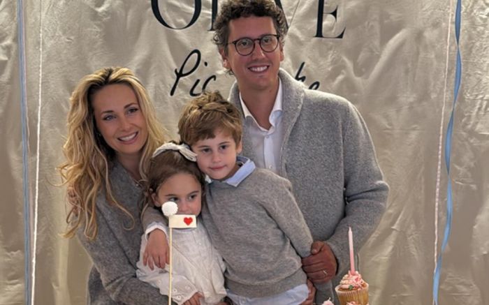 A pequena Olive comemorando seus três aninhos junto com o mano Santi e os pais Vicky Schauffert Schramm e Antônio de Freitas Aiquel. Parabéns!