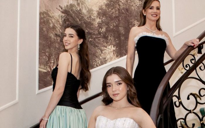 Roberta Zimmermann com as filhas Maria Eduarda e Maria Antônia que debutou no Tabajara Tênis Clube, em Blumenau