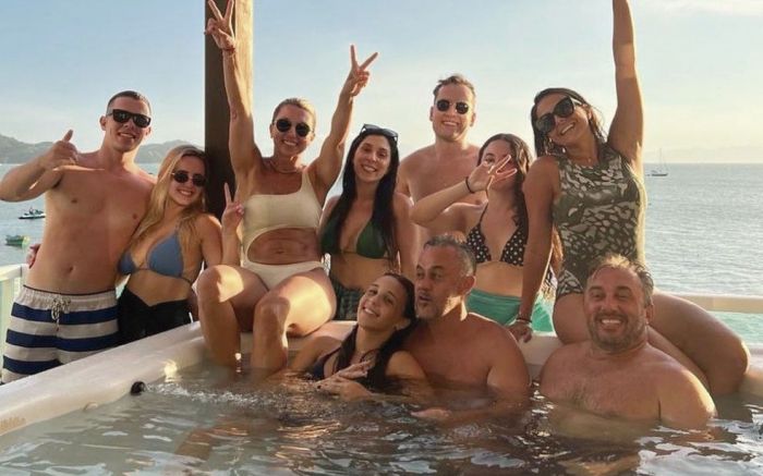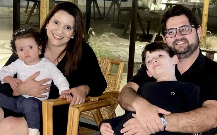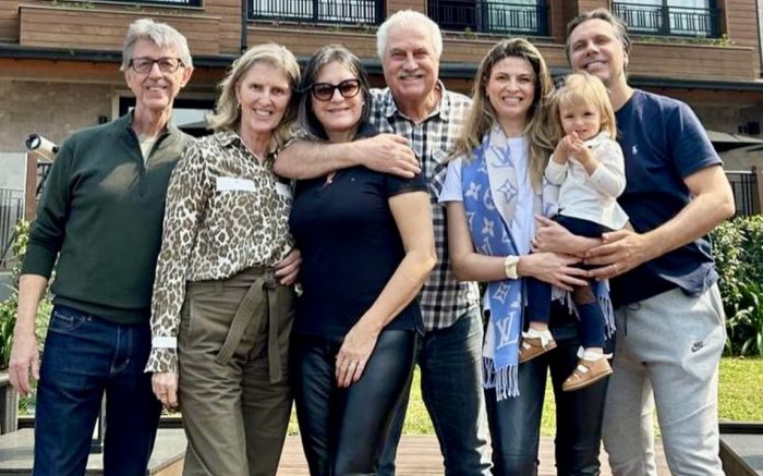 Vini Vieira e Catarina, Simone, Mel e Robson Oliveira, Yasmim e Luciano da Hora, Carlos Moritz e Cristina Steinert, aproveitando em família