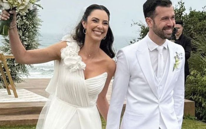 Caroline Saraceni e Eduardo Flores casaram no civil na última sexta, dia 24. Em agosto, dia 17, na Praia do Rosa, eles fazem a cerimônia com celebração para amigos e familiares