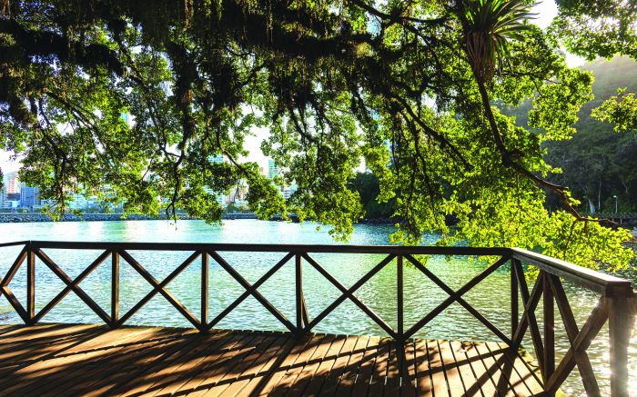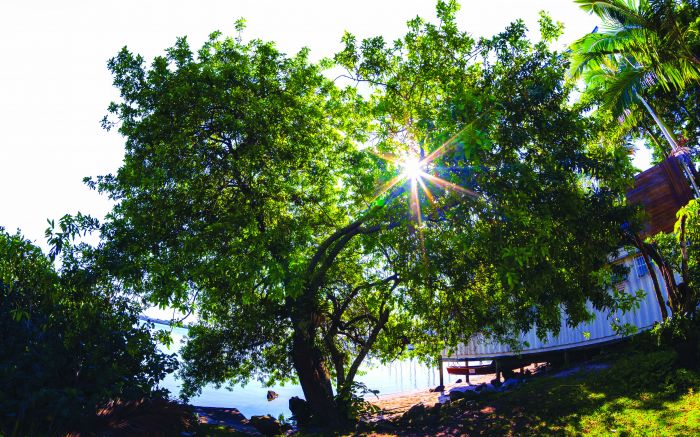 Árvore e os raios do sol, na avenida Beira Rio, em Itajaí