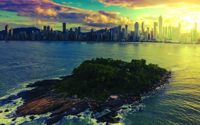 Pôr do sol com o visual da Ilha das Cabras em Balneário Camboriú
