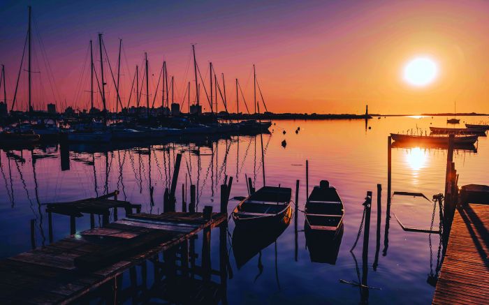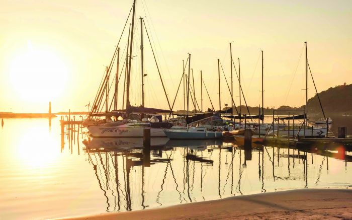 Nascer do sol com os veleiros na Baía Afonso Wippel