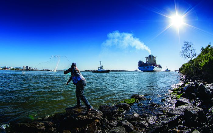 Pescador tarrafeando no Molhe da Barra em Itajaí