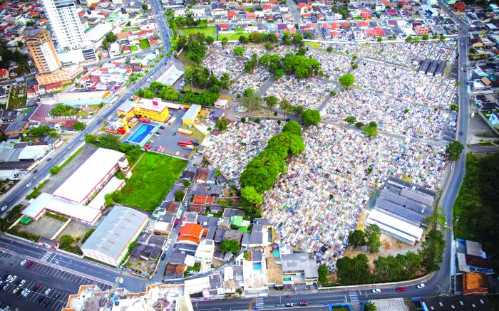Cemitério do bairro Fazenda, em Itajaí, fotografado através de um drone Hórus