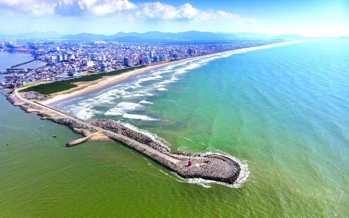 Praia e Cidade de Navegantes vistas do Hórus (Drone