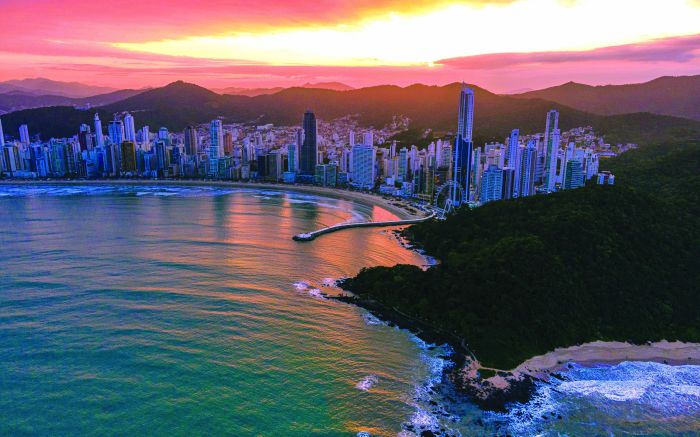 Balneário Camboriú, vista do alto do Parque Unipraias, com drone, num dia espetacular