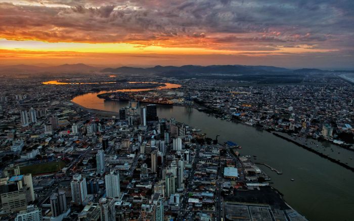 O sol se apaga devagar, mas antes pinta o Itajaí-Açu de ouro líquido. O rio serpenteia entre Itajaí e Navegantes como quem guarda segredos antigos. A cidade respira fundo diante desse espetáculo diário.