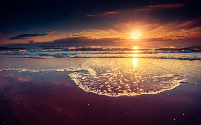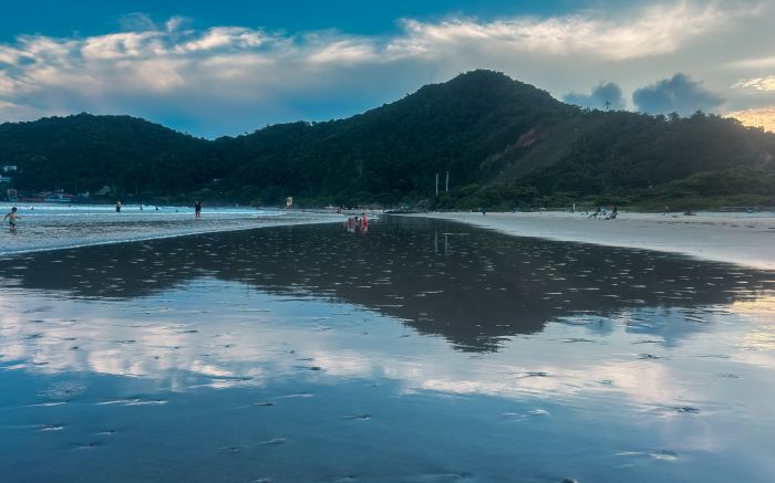 Quando a areia vira espelho. Final de tarde relaxante na Praia do Atalaia, onde o céu e o mar se encontram
