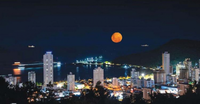 A foto da Superlua foi feita na terça-feira, às 19h40, no alto do Morro da Cruz, em Itajaí