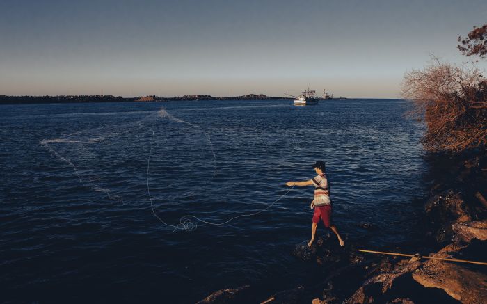 Itajaí e a pesca são duas coisas que têm tudo a ver. Flagra de um pescador às margens do Rio Itajaí Açu, no Molhe da Barra