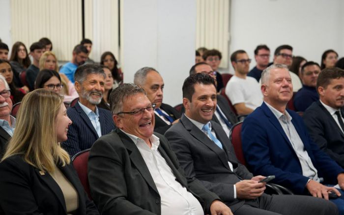 Aula magna do curso de Direito, na Univali, reuniu o vice-reitor Valdir Cechinel – o Sabiá, o presidente da piramidal, entisicado Fernando Pegorini (PL) e o vice-prefeito papai sabe-tudo, Rubens Angioletti (PL), entre outras presenças ilustres