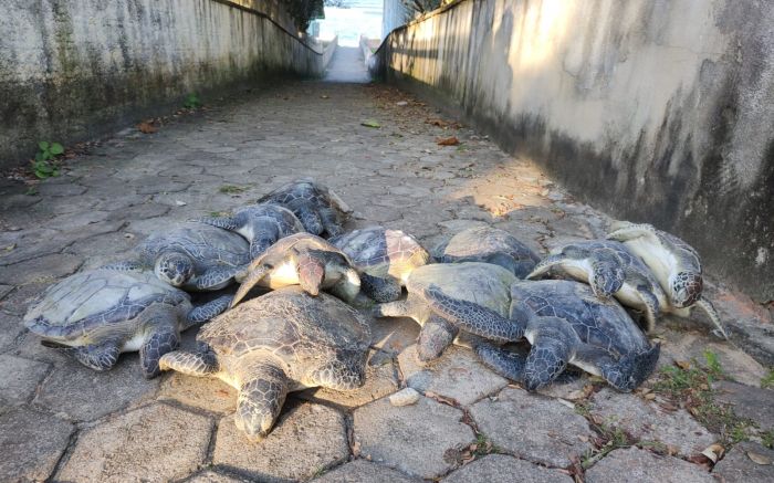 O Projeto de Monitoramento de Praias da Bacia de Santos (PMP-BS), da Univali, encontrou 13 tartarugas presas numa rede de pesca ilegal na praia da Barrinha, em Barra Velha, na tarde desta terça-feira. Só uma delas sobreviveu. Os animais eram juvenis, da espécie chelonia mydas, a popular tartaruga-verde.