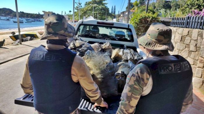A apreensão foi feita na quarta-feira pela Polícia Militar Ambiental (PMA) de Balneário Camboriú. Foram apreendidas 16 redes feiticeiras e salvas duas tartarugas verdes que estavam presas e ainda com vida.
