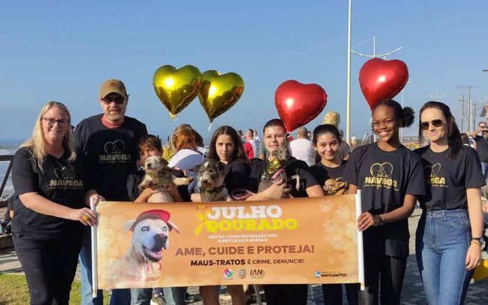 O evento da causa animal integrou o Julho Dourado, mês dedicado ao bem-estar animal e conscientização. A concentração começou às 8h30 em frente à praça Brígida Mendes dos Passos, na beira-mar do Gravatá, e o Nestor, que tem entre sete e oito anos, brilhou como nunca, aproveitando o reforço do pedido da comunidade pela sua adoção e também de vários outros pets presentes.