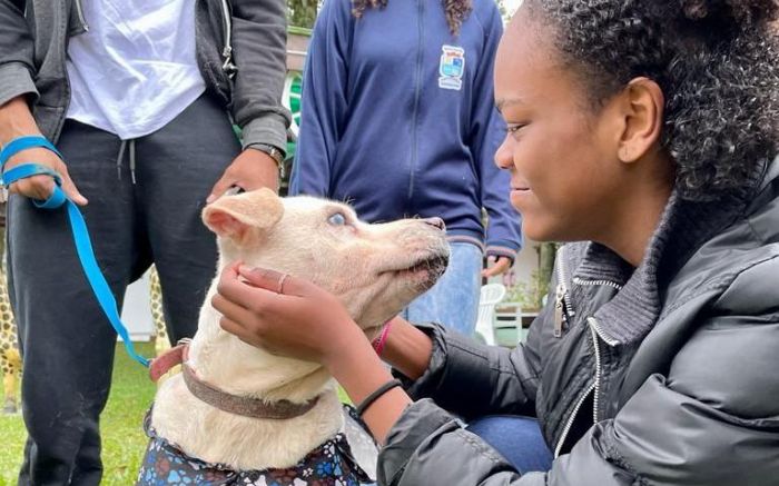 Cão de baixa visão virou símbolo do Julho Dourado ao ser clicado em lar de idosos