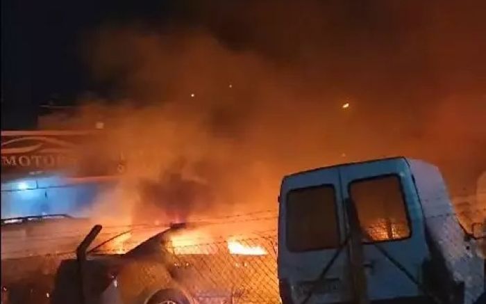 Dupla incendeia revenda de carros na madrugada