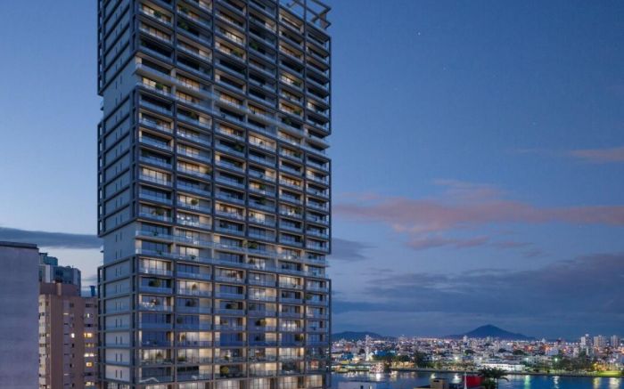 O empreendimento terá duas torres residenciais de frente para o mar, com 14 andares cada, somando 68 apartamentos, com área a partir de 211 metros quadrados. As áreas de lazer vão desde piscina com borda infinita até mirante com lareira. O VGV soma R$ 390 milhões. Em Piçarras, a empresa tem sete projetos em obras. Em Penha, são outros quatro em construção.