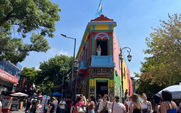 Vale a pena visitar o famoso bairro de La Boca, onde as ruas coloridas do Caminito ganham vida. Caminhe pelas calçadas de paralelepípedos enquanto artistas de rua e dançarinos de tango animam o ambiente. O bairro histórico é bom para comprar alfajor, doce de leite e peças tradicionais da Argentina.