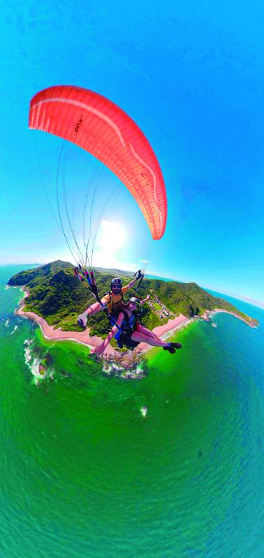 “O voo de parapente na praia Vermelha é um dos mais lindos do litoral brasileiro. A grande extensão da morraria formada por mata nativa e praias junto ao oceano formam um visual indescritível”, descreve o instrutor de voo Anderson Peirão, o Pera, 45, que utiliza o local há 14 anos.